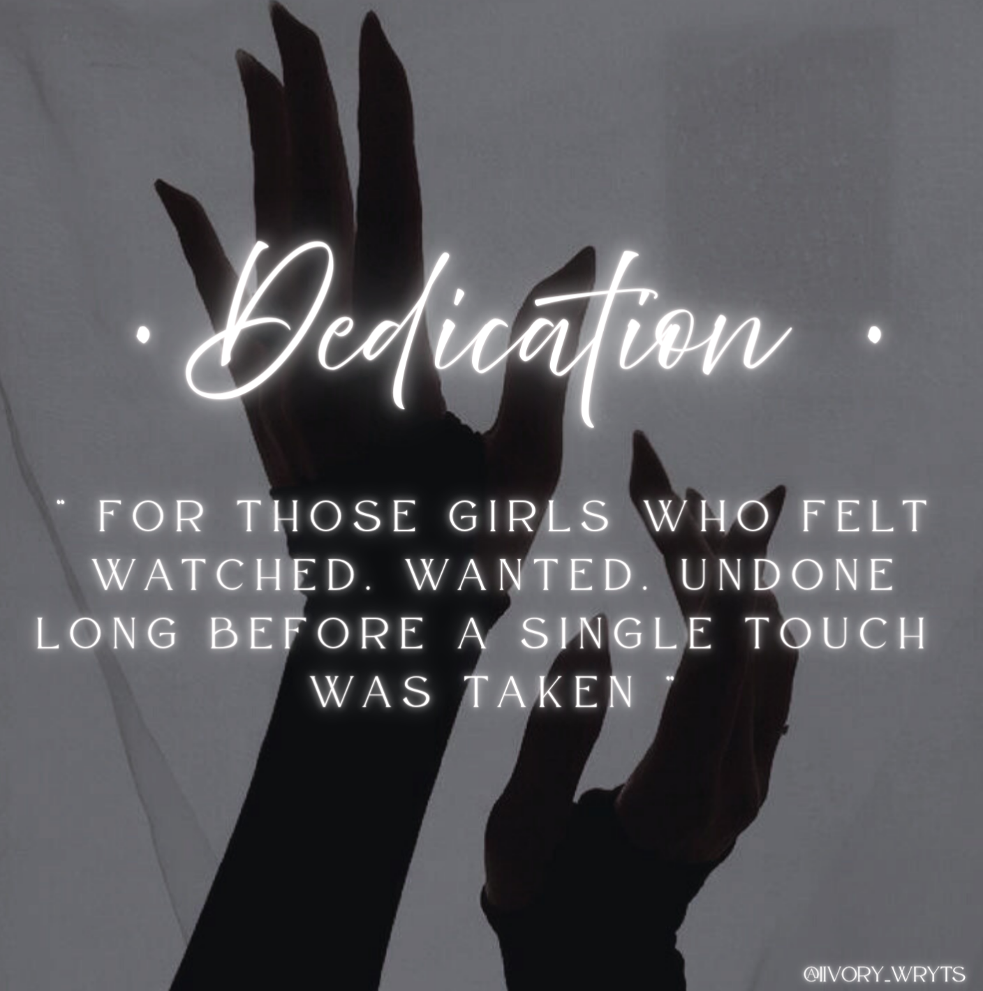 02• Dedication •25 Dec, 2025Share“ For those girls who felt Watched,Wanted and UndoneLong before a single touch was taken ”ShareWrite a comment ...Postiivory wrytsShow your supportWriting for my readers till my hands break Support Me